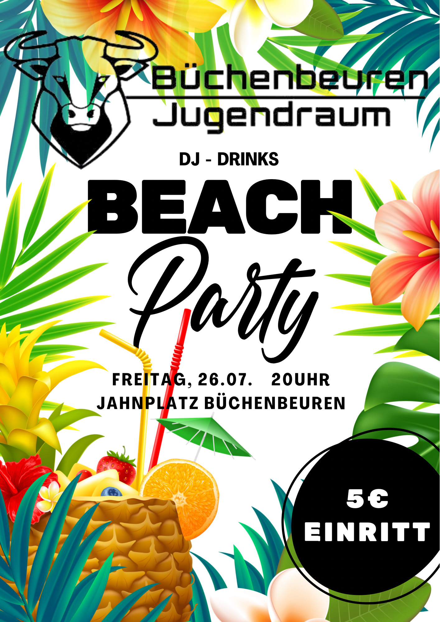 Auch in diesem Jahr veranstaltet der Jugendraum „Stierstall Büchenbeuren“ wieder eine Beachparty in Kooperation mit der Dorf- und Vereinsgemeinschaft Büchenbeuren e.V..